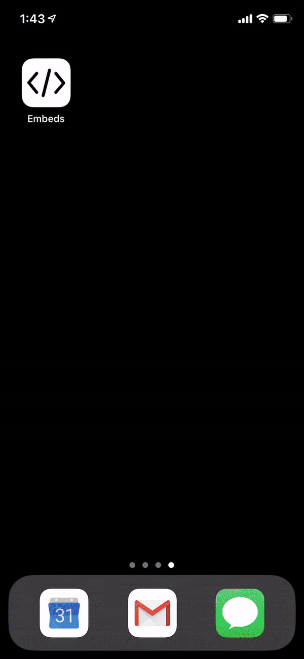 // Load widgets.js once class WidgetsJsManager {     static let shared = WidgetsJsManager()          var content: String?          func load() {        do {            content = try String(contentsOf: URL(string: "https://platform.twitter.com/widgets.js")!)        } catch {            print("Could not load widgets.js script")        }     }          func getScriptContent() -> String? {         return content     } }  let WidgetsJs = WidgetsJsManager.shared  func viewDidLoad() {     WidgetsJs.load() }  // Inject it when a webview loads func webView(_ webView: WKWebView, didFinish navigation: WKNavigation!) {     if let widgetsJsScript = WidgetsJs.getScriptContent() {         webView.evaluateJavaScript(widgetsJsScript)         webView.evaluateJavaScript("twttr.widgets.load();")     } }                              Next, you need to load the Tweet Embed into the HTML wrapper. You'll need to know the ID of the Tweet you want to embed. You could get Tweet IDs from your backend, or by making a request to the Twitter API.
